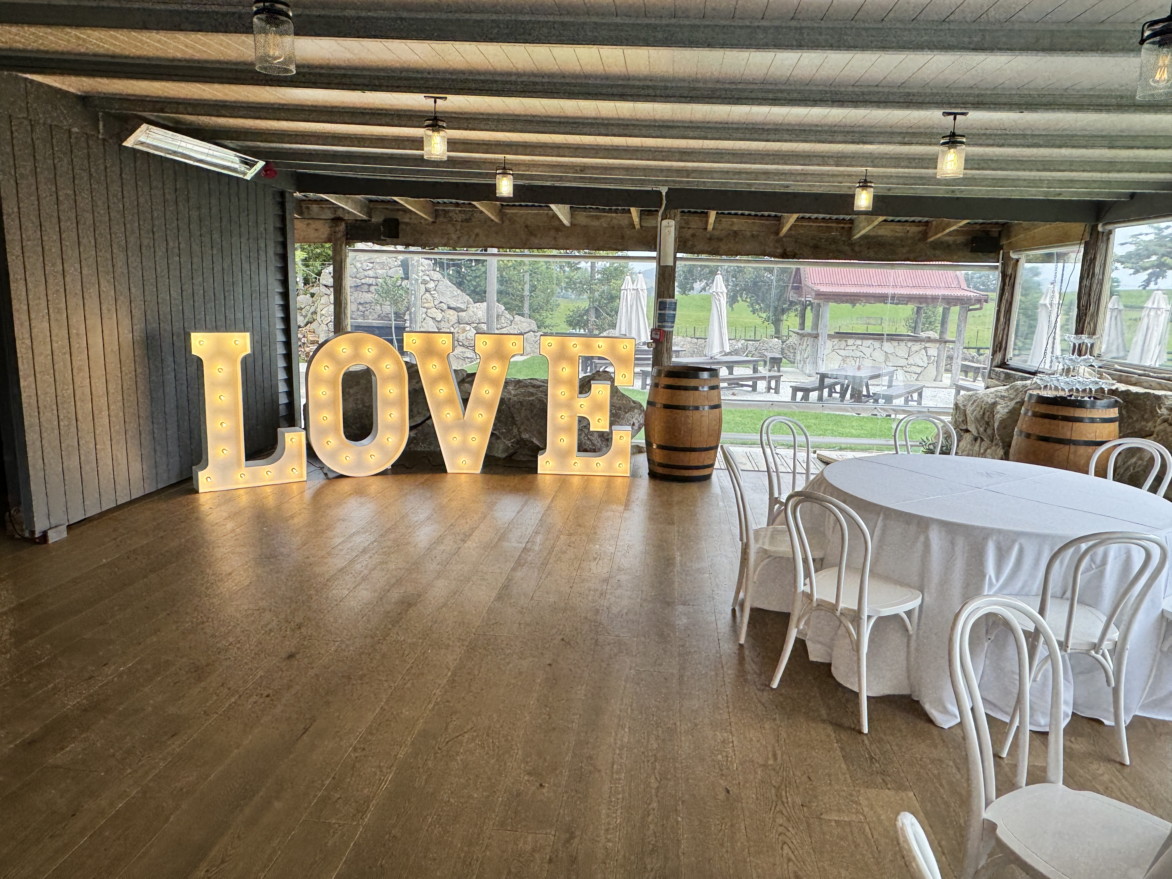 Our illuminated LOVE letters are made with high-quality materials and come in a classic vintage style, providing the perfect backdrop for your special day. Whether you're looking for a stunning photo opportunity or just a statement piece to decorate your venue, our Marquee Letters are sure to impress.